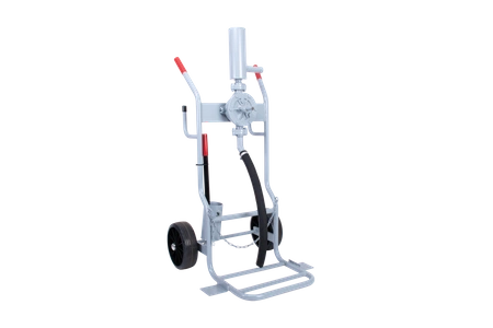 Wytrzymała, wydajna ręczna pompa skrzydłowa do pompowania cieczy. Wydajność rzędu 27 litrów na minutę przy 88 podwójnych skokach. Napełniony pojemnik jest umieszczany na podwoziu i zabezpieczony łańcuchem