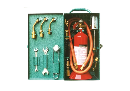 W wytrzymałej obudowie z blachy stalowej. Z kombinacjami palników do lutowania miękkiego, lutowania ołowiu, ogrzewania i czyszczenia płomieniem, a także do lutowania twardego.