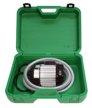 Pompa podciśnieniowa Leister. Stanowi niezbędne wyposażenie do przeprowadzania prób szczelności zgrzewów i spawów geomembran i folii dachowych z wykorzystaniem klosza próżniowego metodą ciśnieniową. Urządzenie jest dostarczane w walizce z tworzywa sztucznego.